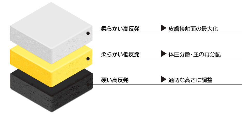 サーデムフィットは、異なったタイプのウレタンフォームの組み合わせです。